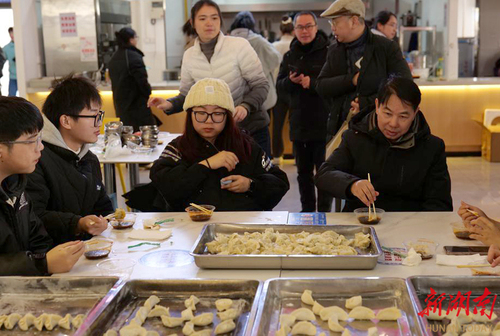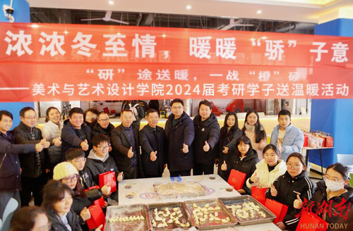 12月22日,“冬至遇上考研”,万搏平台美术与艺术设计学院师生一起为考研学子“包饺子”送祝福。“本周六就要考试了,考研学子的压力很大,我们举办这次活动,是缓解大家考前的压力,祝福考研学子金榜题名,一战成硕。”学院院长张建利说道。