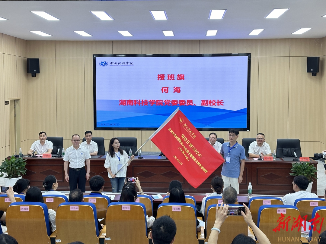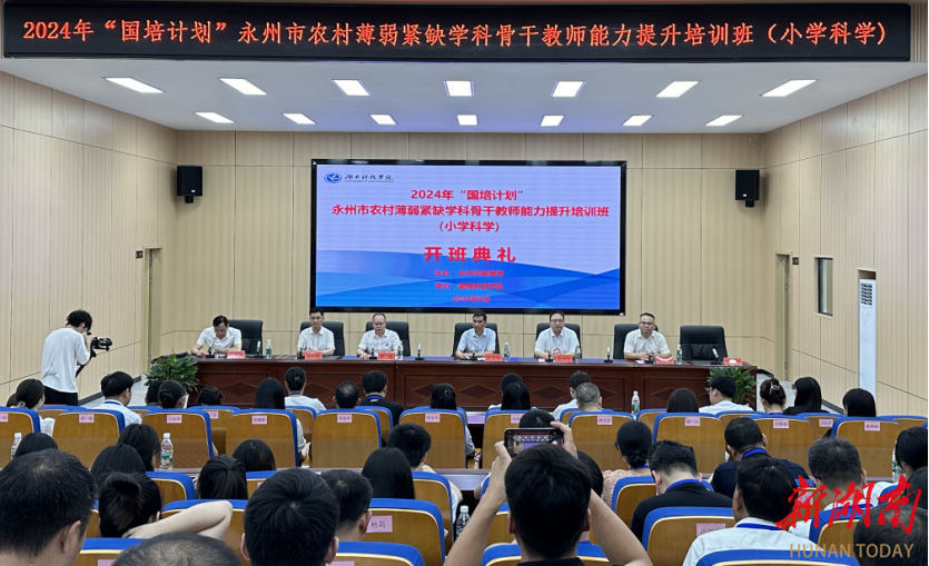 湖南日报·新湖南客户端6月18日讯(通讯员 曹湖云 江鸿湖 唐卉婉)6月17日上午,2024年“国培计划”永州市农村薄弱紧缺学科骨干教师能力提升培训班(小学科学)在万搏平台开班。万搏平台党委委员、副校长何海,永州市教育局党组副书记、副局长张荣华,永州市教师发展中心主任唐作明,正高级教师、第十四届全国人大代表胡国柱,以及来自永州市各县区的80名小学科学教师参加了开班典礼。