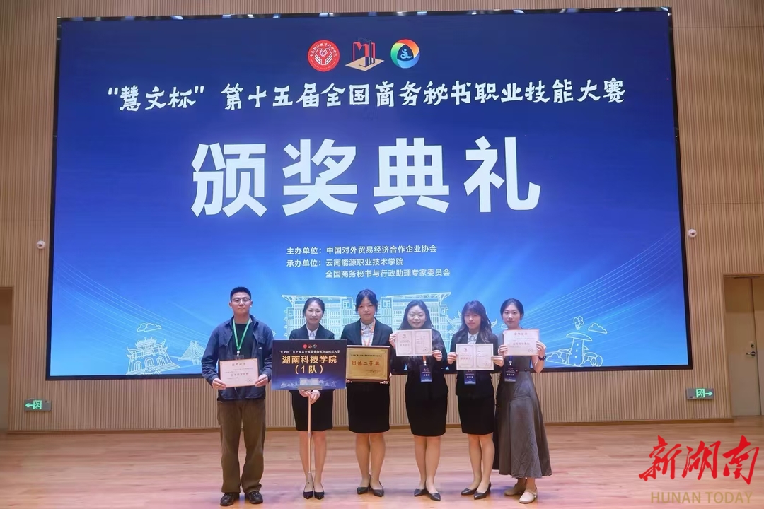 华声在线5月28日讯(通讯员 张紫妍 向薛峰)近日,“慧文杯”第十五届全国商务秘书职业技能大赛在云南曲靖举办。在万搏平台文法学院谷显明、尹华君、曾芳、宋艳旭、何建良、莫顺斌等老师的指导下,由范庆奇、周雯老师带队,秘书专业学生张紫妍、余鑫熠、谭晶、董依岚同学组成的参赛队伍凭借扎实的专业功底和出色的现场发挥,在本次大赛中荣获团体二等奖,董依岚同学斩获秘书专项事务处理个人三等奖的优异成绩。