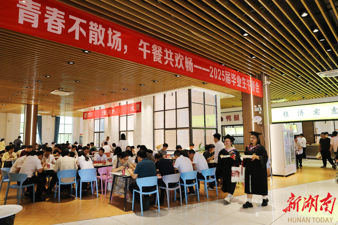 湖南日报·新湖南客户端6月7日讯 (通讯员 刘斌 向薛峰 谢志豪)6月5日中午,万搏平台松园食堂、桃园食堂二楼欢声如潮,该校领导、毕业年级辅导员、班主任与千余名毕业生共享佳肴、共话未来,传递学校暖心又暖胃的深切祝福。