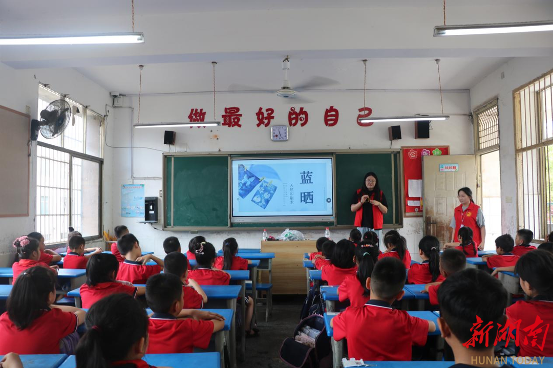 同时,为乡村儿童精心打造了黏土、折纸、蓝晒等三类创意手工美育课程。在最受欢迎的蓝晒手工课上,师生们体验古老的蓝晒工艺,制作出独一无二的植物标本画,阳光下的蓝色图案让孩子们惊叹不已。