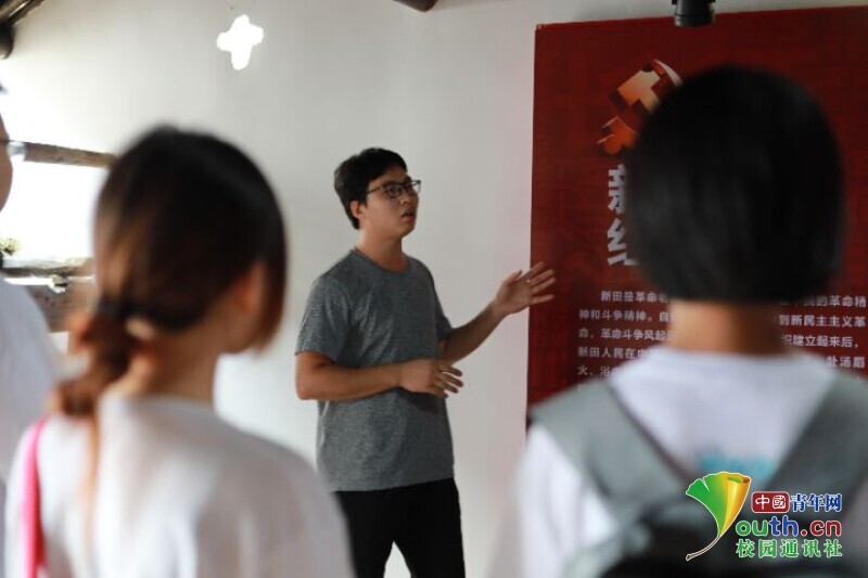 图为带队老师为实践队员讲解当地红色历史。中国青年网通讯员 叶蕾 摄