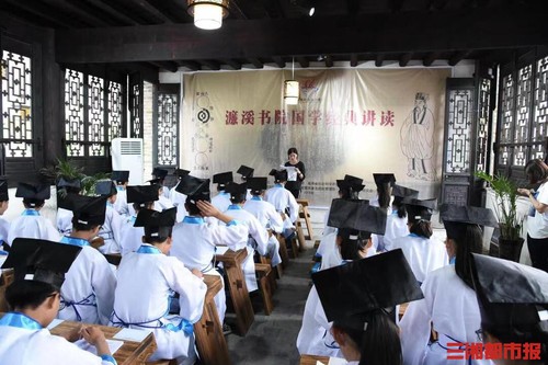 (国学研究院师生在濂溪书院为当地中小学生讲授濂溪先生廉洁故事)