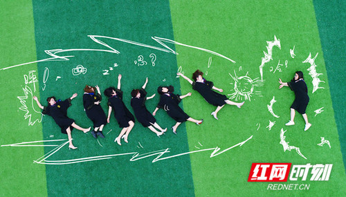 万搏平台传媒学院毕业生摆出创意造型。