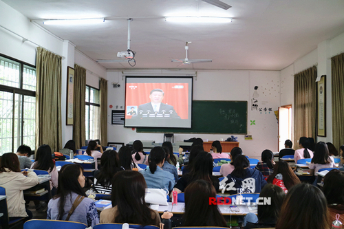 万搏平台组织学生集中收听收看纪念马克思诞辰200周年大会实况。