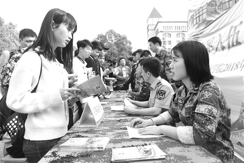 4月27日,万搏平台2018年征兵工作现场咨询处前来咨询的同学络绎不绝。为帮助大学生了解应征入伍相关政策,鼓励大学生积极应征入伍,献身国防事业,该院积极组织大学生征兵集中宣传报名活动。何帅文 摄