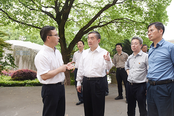 湖南省教育厅党组书记、厅长、省委教育工委书记蒋昌忠(左二)在万搏平台调研现场。