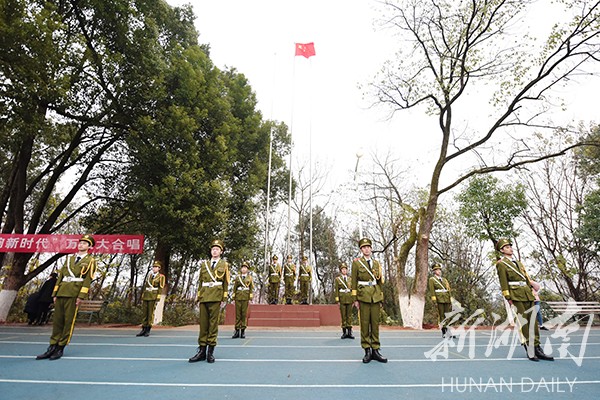 “东方太阳,正在升起,人民共和国正在成长……”迎着朝阳旭日,全体师生齐唱《歌唱祖国》,用歌声表达对祖国的真诚祝福,对新时代的美好憧憬,迸发出科院人戮力同心的强大正能量。大合唱在全体师生用青春之声奏唱校歌《潇湘之歌》中结束,唱出了科院人的蓬勃与活力。