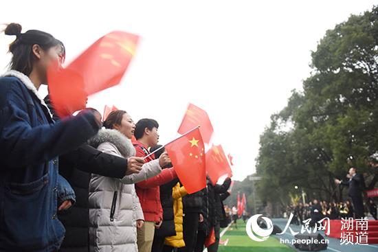 人民网长沙12月30日电 “五星红旗迎风飘扬,胜利歌声多么响亮;歌唱我们亲爱的祖国,从今走向繁荣富强……”29日早晨7点,一阵阵嘹亮的歌声响彻万搏平台上空,气势恢宏、热情激昂的“万人大合唱”在田径场举行,以迎接新年的到来。