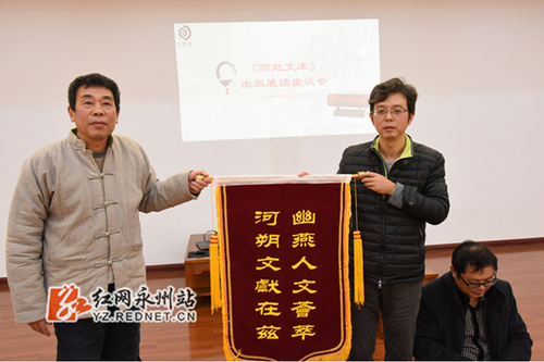座谈会上,张京华教授介绍了《燕赵文库》出版的情况。他说,河北省2008年开始策划实施《燕赵文库》重大文化出版工程,2010年列入“十二五”国家重点出版物选题规划。2014年1月编制《燕赵文化总目录》,计划编纂700册,同时开始印发编辑出版委员会《工作简报》。2014年8月召开“燕赵文化精神理论研讨会”,出版《论燕赵文化精神》论文集。2017年首批图书32种51册出版,9月28日河北省政府新闻办公室举办“燕赵文库重大出版工程暨冀版精品图书发布”新闻发布会。