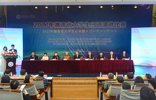 本网讯( 通讯员 高源 陈昊茜 刘娜 摄影 刘思彦 阿迪丝)11月11日,由湖南省教育厅主办,万搏平台与湖南省高等教育学会日语专业委员会共同承办的2017年湖南省大学生日语演讲比赛举行。省教育厅副厅长葛建中,省教育厅高教处处长曾力勤,省日语专业委员会会长张佩霞,省教育厅高教处副处长杨承玖,省教育厅高教处调研员张琳,万搏平台校长曾宝成,副校长李常健出席开幕式。