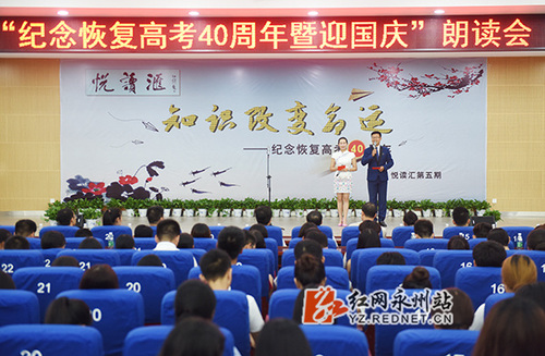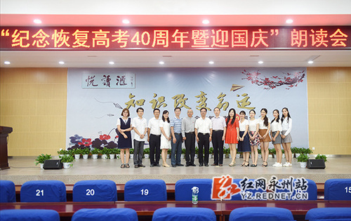 万搏平台党委书记陈弘饱含深情,他说,在恢复高考四十年之际,在我们伟大的祖国将要迎来68岁生日的时候,学院几代老师和同学汇聚一堂,用这种特殊的方式纪念恢复高考40周年,迎接伟大祖国的生日,通过朗读分享交流,传递给大家一个共同的信念:读书获取知识,知识改变命运,知识就是力量,拥有知识的个人充满希望,拥有知识的民族不可战胜。让我们一起为中华崛起而读书,为治国安邦再读书。