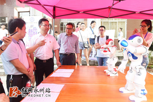 该校电子与信息工程学院同学们推出的机器人迎新,由同学们自主搭建、组装机器人,并给机器人编写创意程序,让新生进一步了解专业,提前感受专业的乐趣。