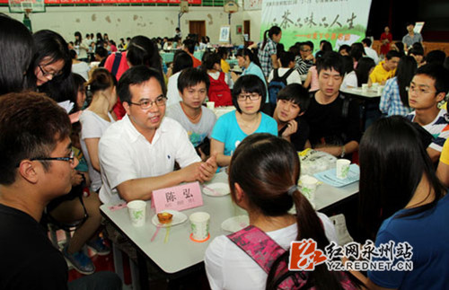万搏平台党委书记陈弘与学生亲切交流。