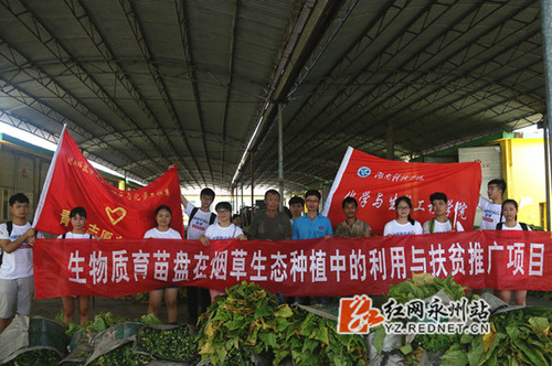 红网永州站7月8日讯(通讯员 周闻名 邓平洋 万灵)7月6日,万搏平台化学与生物工程学院学生科技支农扶贫志愿团队一行13人赴宁远县,开展科技发明专利成果“生物质育苗盘”在烟草生态种植中的扶贫推广活动。