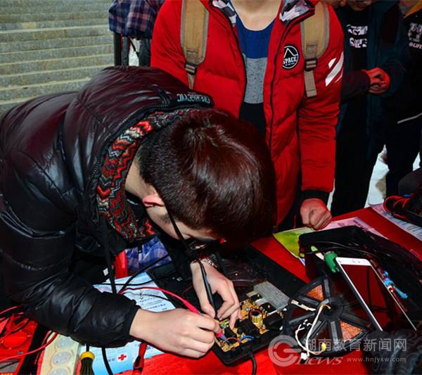 骑着电动车的张先生正准备回家,“我的电动车前几天出故障了,上班很不方便,每天得挤公交车,今天礼拜天正准备推出来修,看到这边有免费维修,就过来试一下,真厉害,以后再也不用挤公交了”。张先生兴奋的说个不停,一旁的秦老先生也对志愿者们的服务点了一个大写的赞,“太谢谢这些孩子了,街上维修部都修不好的东西,到了他们手里竟然能弄好,真不愧是大学生。”