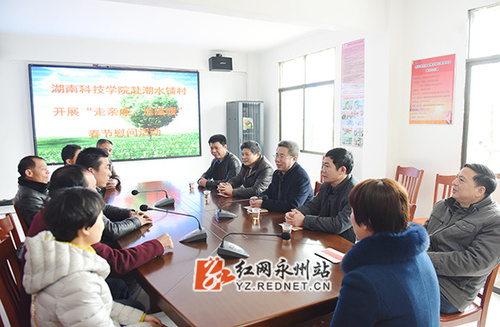 当日上午,曾宝成和学校党委副书记唐艳明,副校长吴小林、程智开,副校级督导、工会主席陈仲庚带领学校组织部、党政办、资产处、就业创业指导中心等部门负责人冒着细雨严寒走进扶贫村,进村入户为88户贫困户、6户五保户、村两委委员送去慰问金,并到结对贫困户、百岁老人家中送去慰问金和春联。为改善村委办公条件,现场还捐赠了办公电脑。