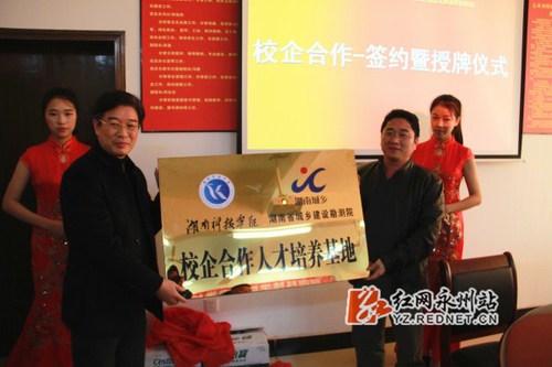 万搏平台与中铁十七局集团、湖南省城乡建设勘测院等三家企业签订了校企合作协议,在中铁十七局集团永州城南大桥项目、湖南省城乡建设勘测院永州办事处挂牌成立“校企合作人才培养基地”,并在万搏平台挂牌成立“工程技术研发中心”、“协同育人中心”,共同推进“订单式”人才培养和科技项目攻关。