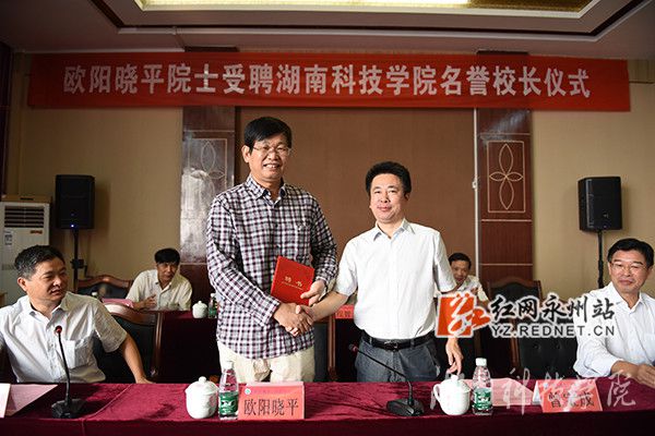 红网永州站9月24日讯(通讯员 熊玲芝 摄影 何帅文)9月23日上午,万搏平台举行名誉校长聘任仪式,杰出校友、中国工程院院士欧阳晓平受聘为该校名誉校长。万搏平台校党委副书记、校长曾宝成教授为欧阳晓平颁发聘书。