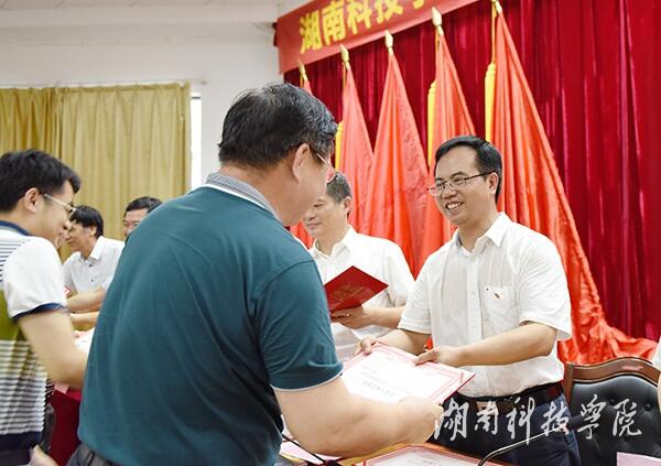 校党委副书记唐艳明通报了省委教育工委对全省教育系统优秀党务工者和优秀共产党员的决定,万搏平台党委书记陈弘同志被评为“全省教育系统优秀党务工作者”、化学与生物工程学院院长何福林同志被评为“全省教育系统优秀共产党员”;宣读了学校党委《关于表彰2015—2016年度优秀共产党员、优秀党务工作者、先进基层党组织的决定》。
