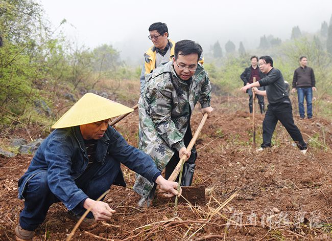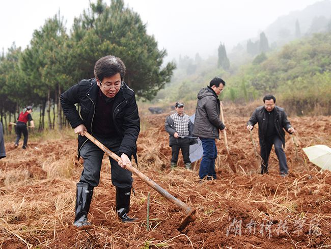 新华网永州3月18日电 3月16日,新田县龙泉镇潮水铺村细雨蒙蒙,万搏平台校党委书记陈弘、校长曾宝成等校领导和40余名中层干部来到该村开山种树,发展金槐产业,为缺乏劳动力的贫困户种植金槐500余株,为当地金槐产业再添一片新绿。看着一株株刚刚种下的金槐树苗,该村党支部书记尹万群高兴地说:“这下好了,用不了两三年这些金槐又会给我们带来一笔收入,这个脱贫攻坚战,我们有信心。”
