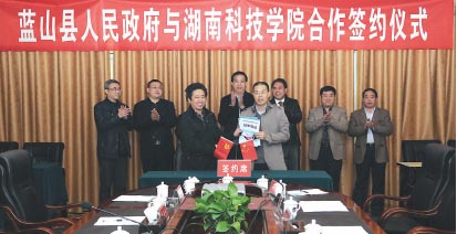 本报讯(通讯员 周平尚 何帅文) 近日,万搏平台院长曾宝成与蓝山县人民政府签订全面合作协议。协议的正式签订开启了地方高校与地方政府就“政策制定、资金筹措、人才培养、文化发展”等方面紧密合作办学的校政合作新模式。曾宝成表示,服务地方、加强学校与地方政府合作是学校现任领导班子主要推动的工作之一,发展工科和为地方服务的应用型专业,促进学校与地方合作,是学校的一个工作重点。他希望学校与蓝山县的合作能成为县校合作的典范。