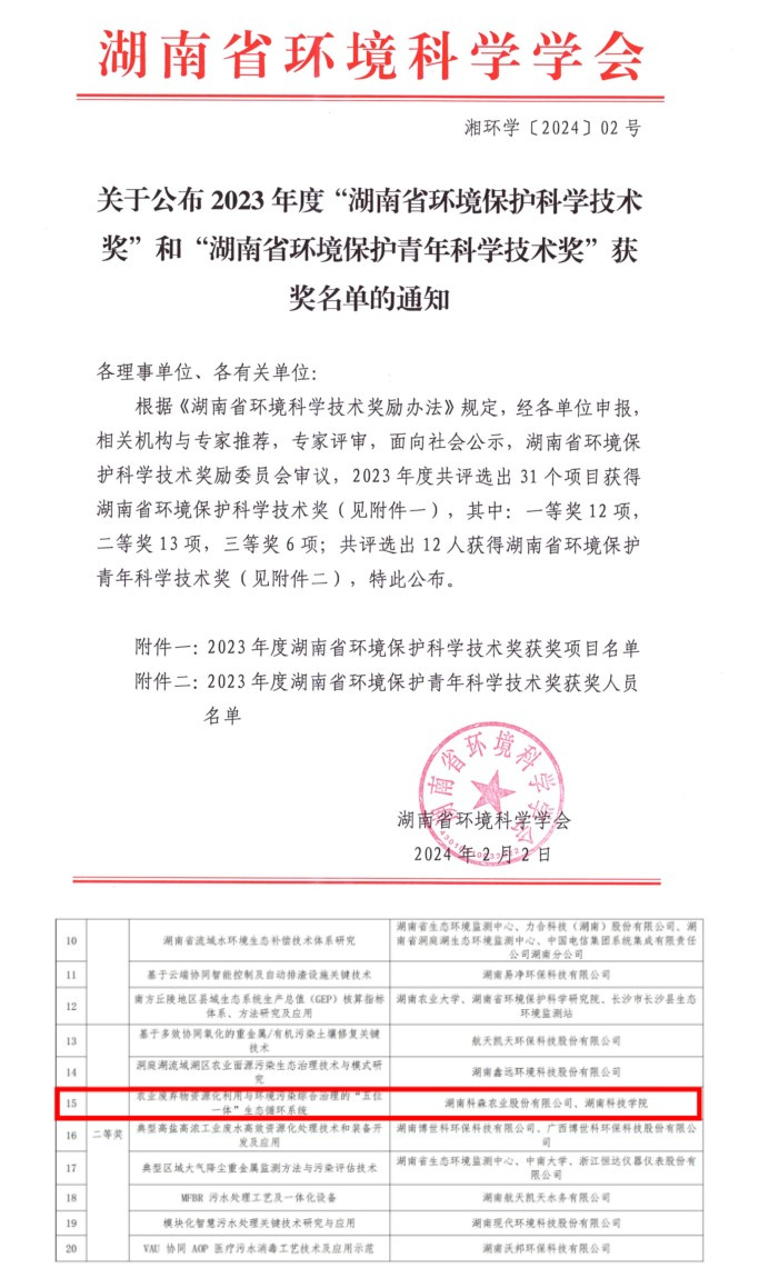 本网讯(通讯员 李尊华 刘乐近日,湖南省环境科学学会对在我省生态环境相关领域的科学技术、科技成果转化、新技术引进与推广等方面做出突出贡献的个人和组织进行了表彰。生物化工学科博士团队成员覃佐东教授、李尊华博士骆鹰博士联合湖南科森农业股份有限公司完成《农业废弃物资源化利用与环境污染综合治理的五位一体生态循环系统》项目凭借其突出的创新性和实用性,在众多项目中脱颖而出获湖南省环境保护科学技术二等奖。