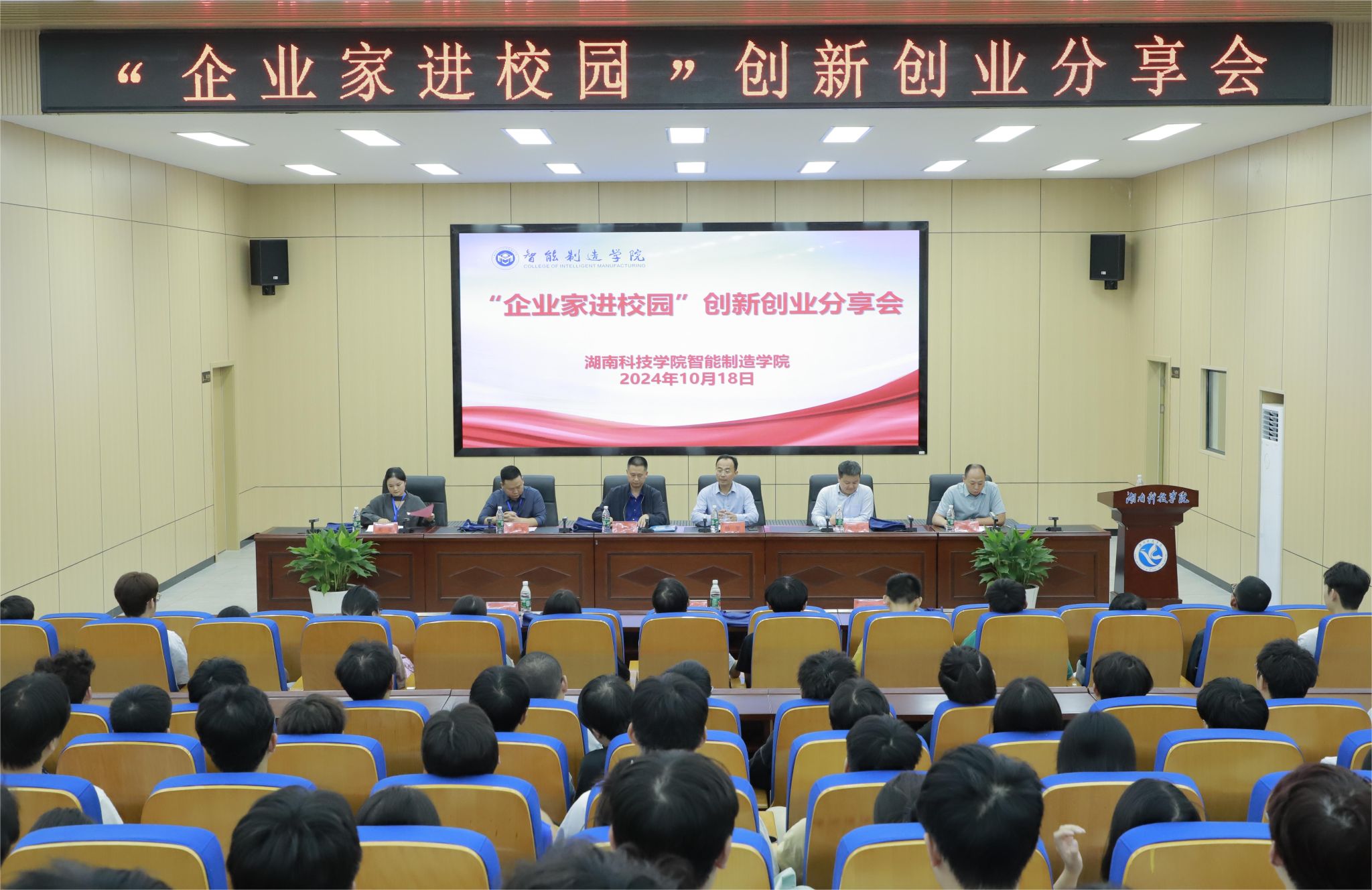 双选会结束后,智能制造学院继续做好“后半篇文章”,还召开了“企业家进校园”创新创业分享会,邀请企业家们走上讲台,“送岗上门”,与大学生“零距离”接触,分享自己的创业故事与成功经验。企业家们用自身的创业经历,生动形象地讲解了新时代大学生如何认识自我、树立理想、追求进步等问题,引导大学生树立正确的创业观、就业观。