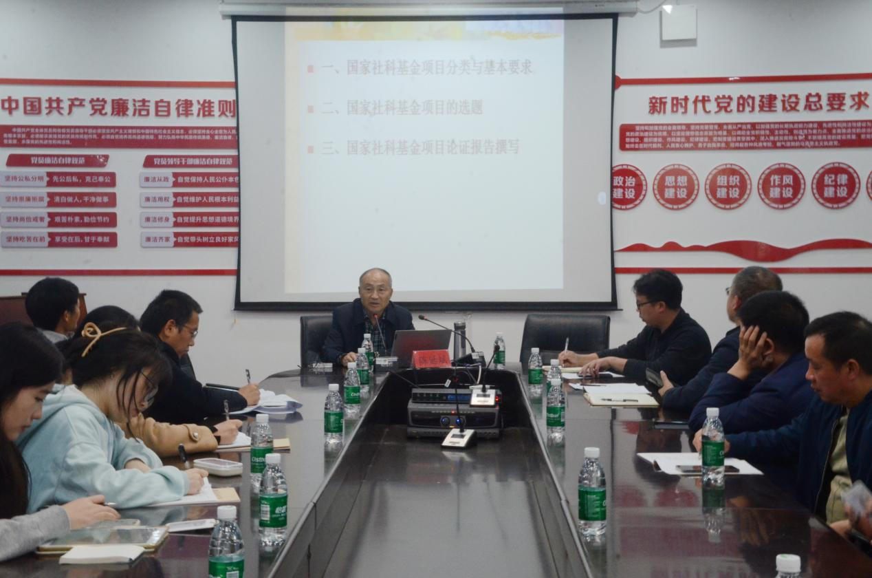 本网讯(通讯员 陈婧 黄玉婵)为进一步推动教师积极参与高层次社科基金项目的申报工作,文法学院于12月4日在明德楼207举办了高层次社科基金项目的选题与申报专题讲座。此次讲座特别邀请江苏师范大学中华家文化研究院院长、博士生导师陈延斌教授作为主讲嘉宾。讲座由文法学院院长谷显明主持。
