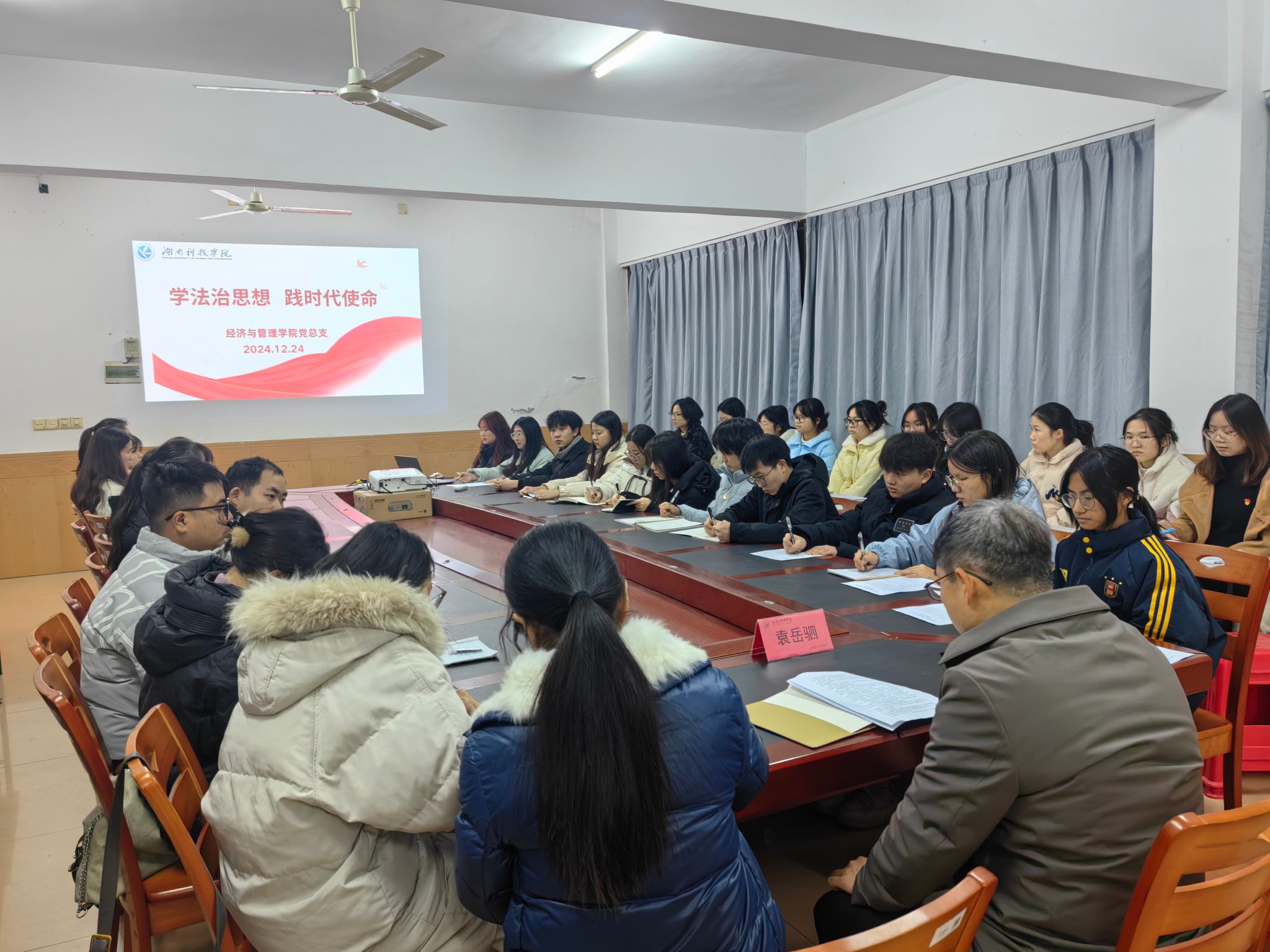 本网讯(通讯员 张磊)为强化党员的法治意识和廉洁精神,提升党员的政治判断力、政治领悟力、政治执行力。12月24日晚,经济与管理学院在桃一“一站式”学生社区党员活动室开展“学法治思想,践使命担当”主题党日活动,学院党总支书记袁岳驷,各学生党支部书记和全体学生党员参加活动。