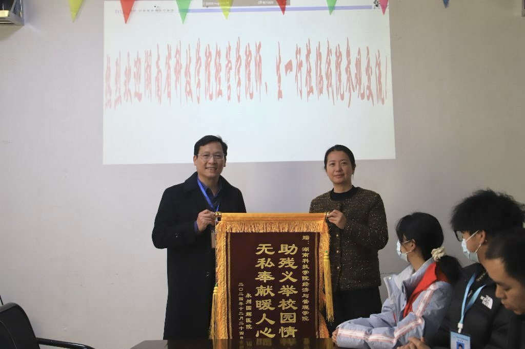 本网讯(通讯员 曾凯琴 吴智婷)12月24日上午,经济与管理学院党总支副书记龙诗颐、团总支书记张鹏带领学生志愿者走出校园,深入永州市国辉精神病医院开展“传递爱与希望,共筑精神健康”志愿服务活动。