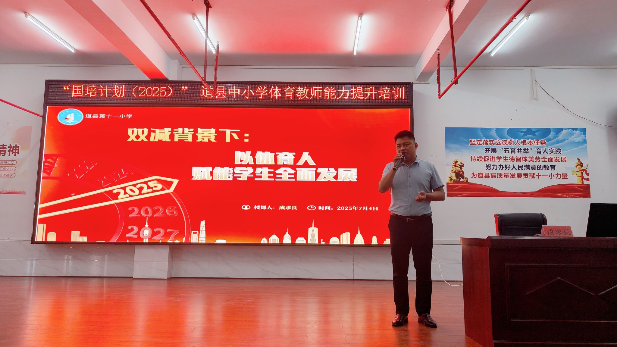 本次培训由道县教育局主办,我校承办,道县第十一小学协办。培训为期7天,包括4天集中研修和3天跟岗实践。聚焦主题“三新”背景下体育教师核心素养进阶与教学能力跃升,通过专题讲座、案例研讨、现场诊察、任务驱动式学习等形式,重点提升教师核心素养进阶与教学能力。