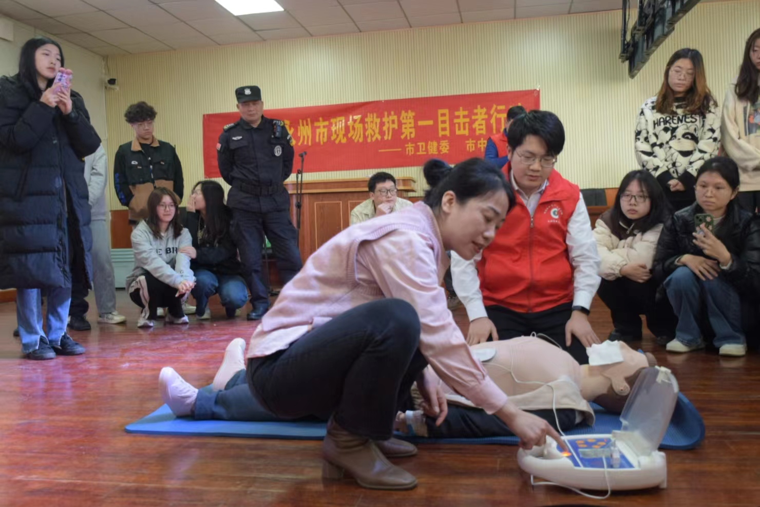 本网讯 3月4日,传媒学院与永州市中心医院现场救护培训导师团队在明理楼702举办大学生“现场救护第一目击者”资格证培训活动,60多名师生参加活动。