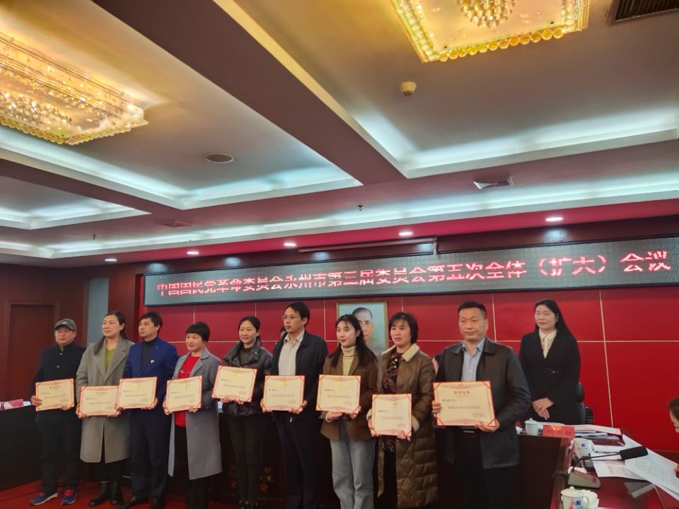 本网讯 3月21日上午,民革永州市第三届委员会第五次全体(扩大)会议在冷水滩召开,会议表彰了先进。民革万搏平台支部荣获先进支部,这也是民革永州市委2013年开展争先创优以来民革校支部第五次荣获先进支部。陈义勇荣获优秀党员,方芳荣获优秀党务工作者,民革校支部提交的调研报告获2020年度永州市政协好调研二等奖。