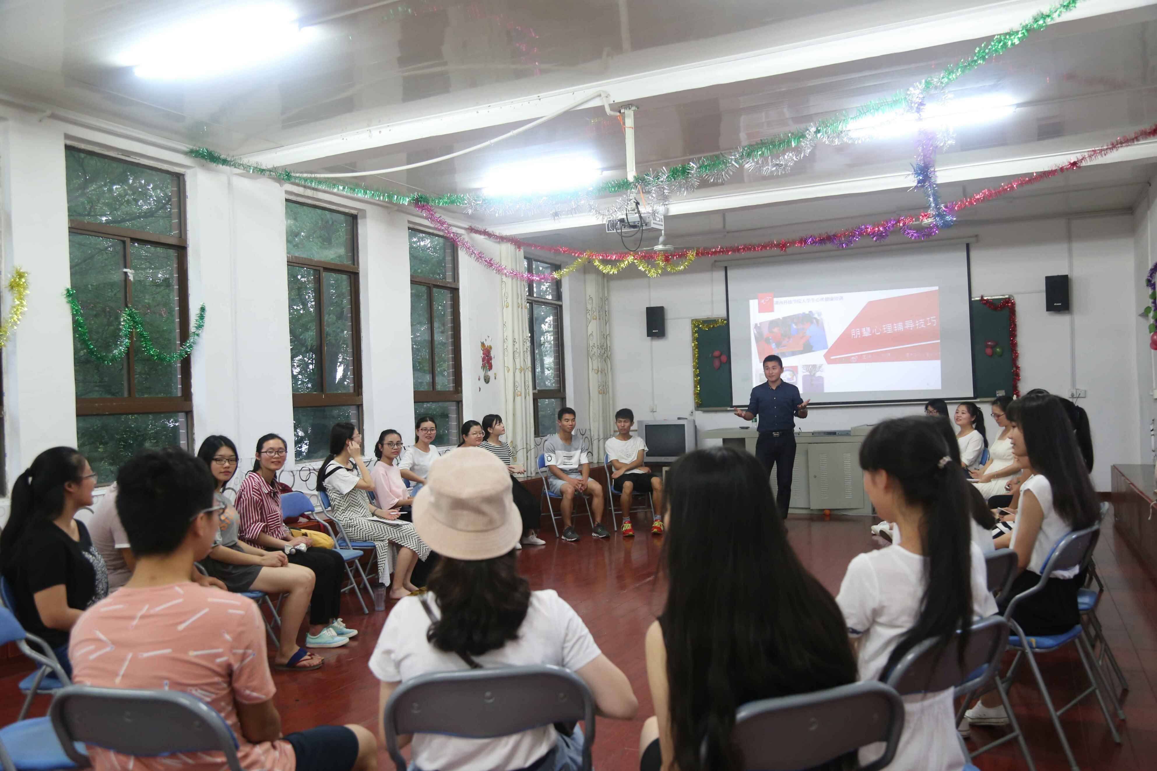 活动中,该院心理专干刘罗通过小和尚阿水的故事,滚雪球式自我介绍等环节使得现场气氛轻松活跃。其后,刘罗分别从倾听,探问,面质和自我暴露四个方面讲解了心理辅导技巧,并现场演绎心理委员安慰失恋同学的案例,从中引导同学们发现问题,并作出详细分析,就探问时的开放式问题和封闭式问题做了现场演示。同时,刘罗结合所讲知识进行现场心理咨询模拟,让同学们学会如何用所学知识进行“实战”。