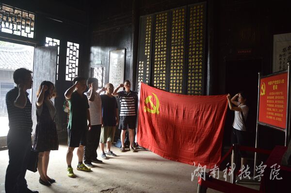 在党委委员、副校长程智开的带领下,就业创业指导中心全体党员重温入党誓词,庄严宣誓,并瞻仰李达同志故居。