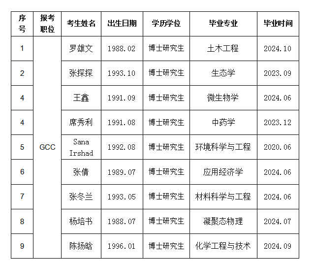 根据《万搏平台2024年公开招聘高层次人才公告》有关规定,经个人报名、学校组织资格审查,现将符合应聘资格条件人员公示如下: