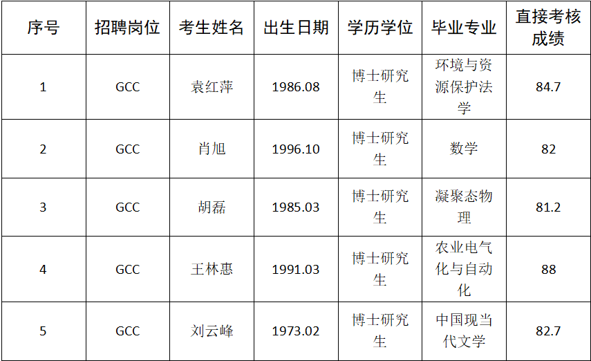 根据《万搏平台2024年公开招聘高层次人才公告》有关规定,我校第四批次直接考核工作已结束,现将考试成绩予以公示如下: