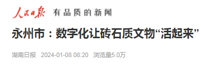 https://wap.peopleapp.com/article/7309294/7146623 湖南日报: https://epaper.voc.com.cn/hnrb/html/2024-01/08/content_1667359.htm?div=-1 湖南省人民政府网:http://www.hunan.gov.cn/hnszf/hnyw/szdt/202401/t20240108_32620287.htm 湖南日报1月7日讯(全媒体记者 严万达 通讯员 林泽红 李谌涵)今天,在祁阳市浯溪碑林数字化体验展厅,记者通过点按触摸等方式,不但看到了珍贵的文物,还详细了解了背后的故事,感受文旅融合的魅力。永州现存古摩崖石刻2000余方,其中以唐宋摩崖石刻最具代表性,尤以宋刻最为丰富。全国共有北宋诗刻344种,湖南有64种,全部在永州。祁阳市浯溪碑林为中国南方最大露天碑林。 祁阳市浯溪文物管理处党委书记、主任刘勇介绍,为保护传承好这些文化遗产,让古老碑刻焕发新生机,景区积极推进文旅深度融合发展,一手抓摩崖石刻保护,一手抓碑林数字化建设,已完成505方碑刻的数字化采集,建成数字化体验展厅,将所有碑文零距离、立体式、延伸式展示到公众眼前,营造沉浸式互动体验。 永州持续加大文物保护传承与创新力度,积极探索通过数字化技术和手段,激发文物的价值和活力,让沉睡资源“活起来”。 万搏平台是省内唯一一所承担中国传统村落数字博物馆建设项目的高校,目前完成永州市中国传统村落数字博物馆40余个。 2023年12月27日,砖石质文物智慧化保护利用技术湖南省重点实验室在永州揭牌,由万搏平台、湖南大学、上海建为历保科技股份有限公司三家单位联合共建。这是省内首个以砖石质文物为研究对象、智慧化保护为研究手段的重点实验室,三家单位在历史建筑数字化保护、智能检测和监测、修缮加固等领域拥有的原创性成果,处于省内领先、国内先进水平。 “湖南省近现代重要史迹代表性建筑数量排全国前列,为重点实验室基础研究和成果孵化提供了丰富的样本。”万搏平台土木与环境工程学院院长、砖石质文物智慧化保护利用技术湖南省重点实验室主任周基介绍,实验室将研发砖石质文物智慧化保护与利用关键集成技术,打造砖石质文物智慧化保护和利用专有装备产学研用联合体,服务砖石质文物保护和文旅产业。