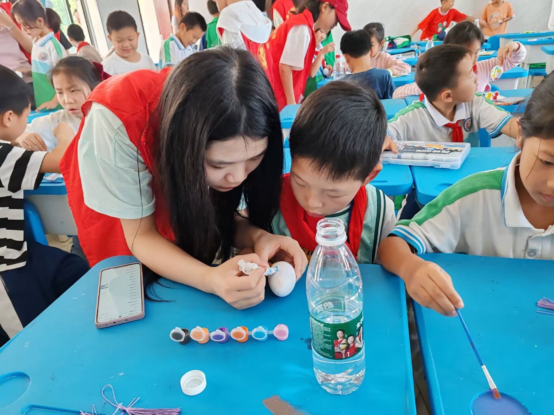 活动中,志愿者们通过图片、文字和歌曲的形式,向孩子们生动形象地讲解了二十四节气及其带来的自然规律变化,鼓励孩子们发挥其独特的理解力和想象力,拿起手中不同颜色的画笔去绘画心中梦想的彩蛋,期望将来有一颗幸运彩蛋降临到每位孩子身上。整个活动中充满了欢声笑语,小朋友们纷纷表示非常喜欢这场活动。