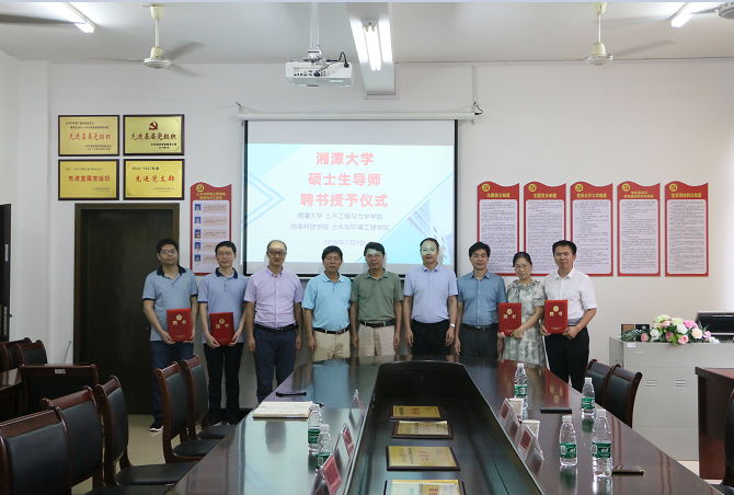 通讯员(胡佳星 孙明)7月9日下午,湘潭大学土木工程与力学学院院长龙志林、党总支书记陈幸华等一行来到土木与环境工程学院开展工作交流,并颁发湘潭大学土木水利专业学位硕士点研究生导师聘书,仪式由该院院长周基主持,发展规划与学科建设处处长潘剑锋、该院党总支书记张俭民及全院博士、教授出席颁发仪式。