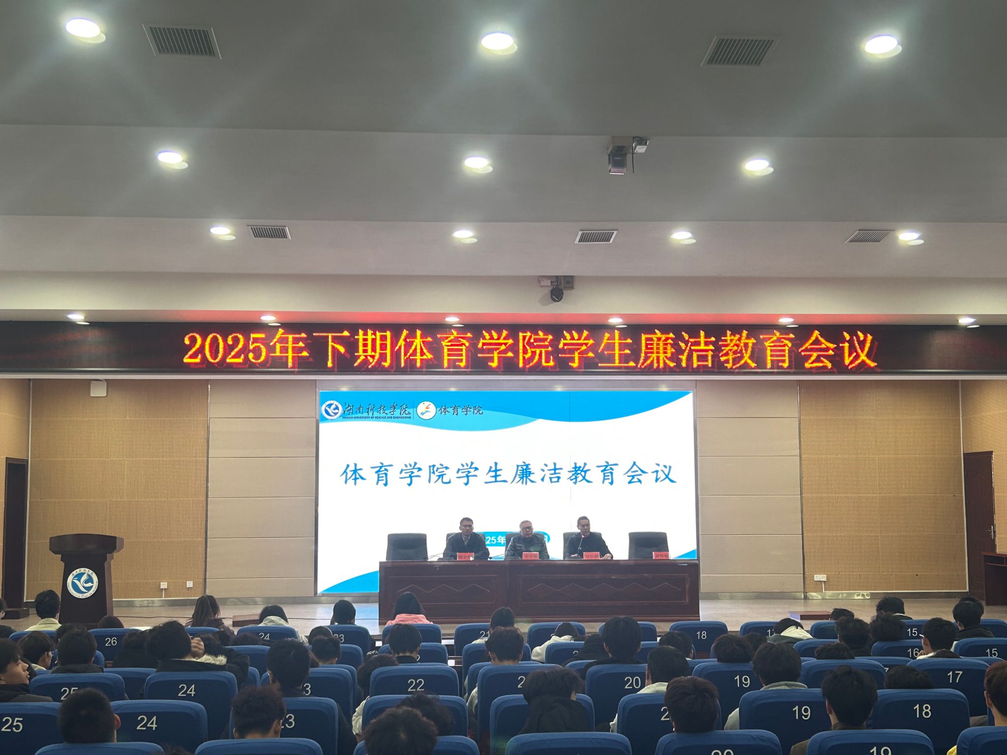 本网讯(通讯员 贺容容) 10月22日,体育学院在潇湘大讲堂举行廉洁主题教育。学院党总支书记陈泽顺、党总支副书记刘华剑出席活动,全体学生参加。刘华剑在讲话中勉励同学们要将廉洁教育与专业学习相结合,坚守教育初心,在体育测试、竞赛评判中弘扬正气,自觉抵制不良风气,在未来的工作中恪守公平公正,努力成长为有理想信念、有道德情操、有扎实学识、有仁爱之心的“四有”好教师。陈...