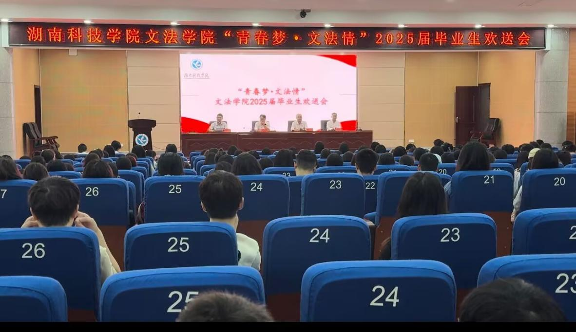 本网讯(通讯员 陈婧 黄玉婵)5月16日,文法学院在潇湘大讲堂举行2025届毕业生欢送会。院长谷显明、党总支书记曾二青等学院领导,辅导员及全体毕业生共同参会。