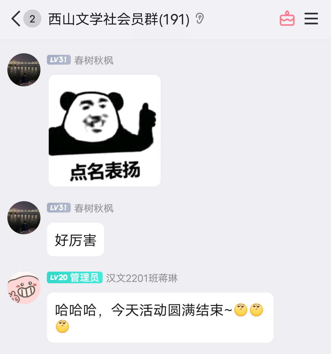 肩鸿任钜踏歌行,功不唐捐玉汝成。我社将继续以发展校园文化、培育文学新人为己任,总结成功经验,探索特色形式,继续开展文学性、专业性兼具的活动!(一审:李惊宇 二审:黄海滨 三审:张健)