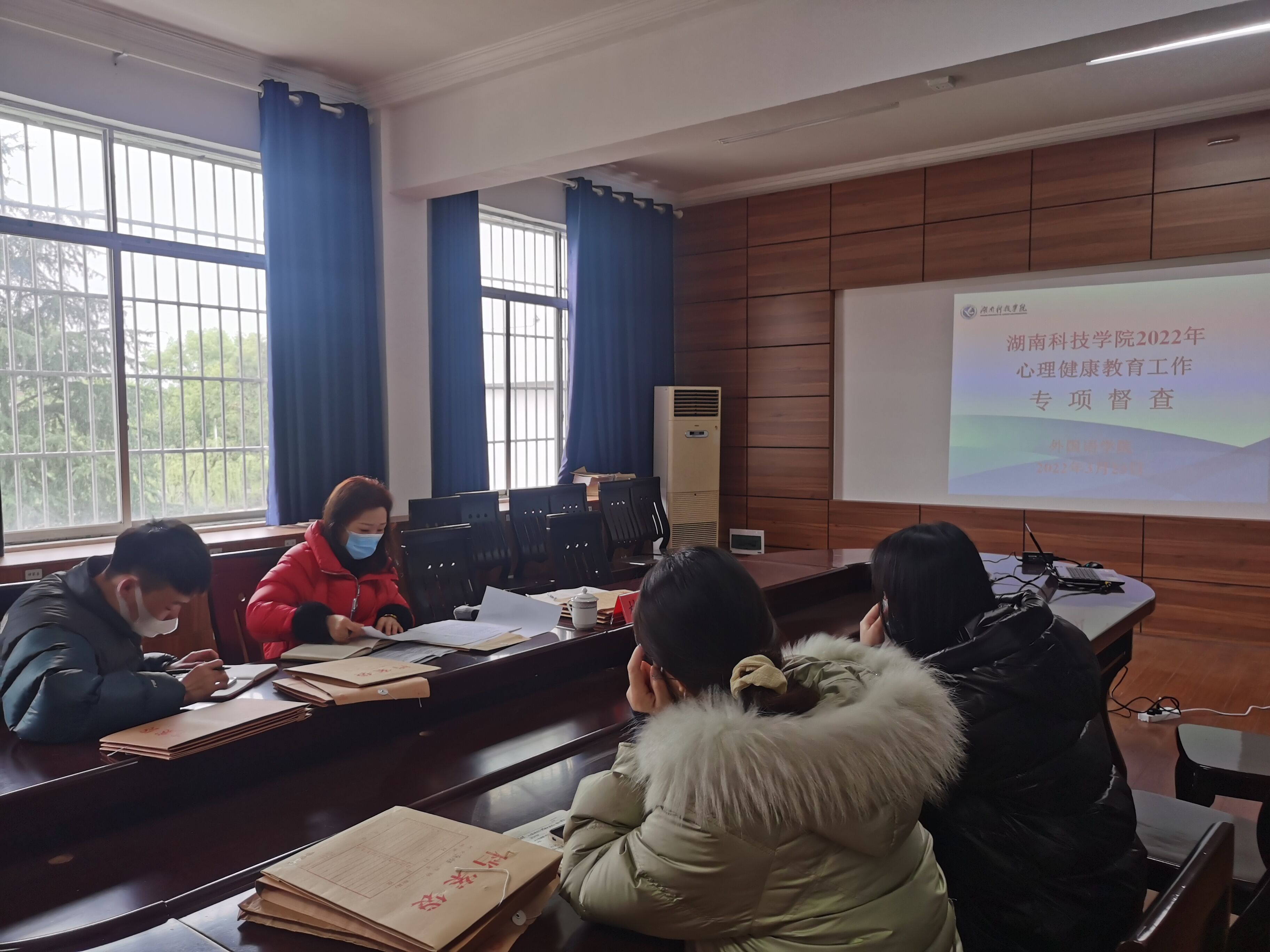 3月23日上午,万搏平台2022年心理健康教育工作专项督查在外国语学院博雅楼202会议室开展。心理中心专职咨询师林静教授、外国语学院党总支副书记罗晶和全体辅导员参加会议。