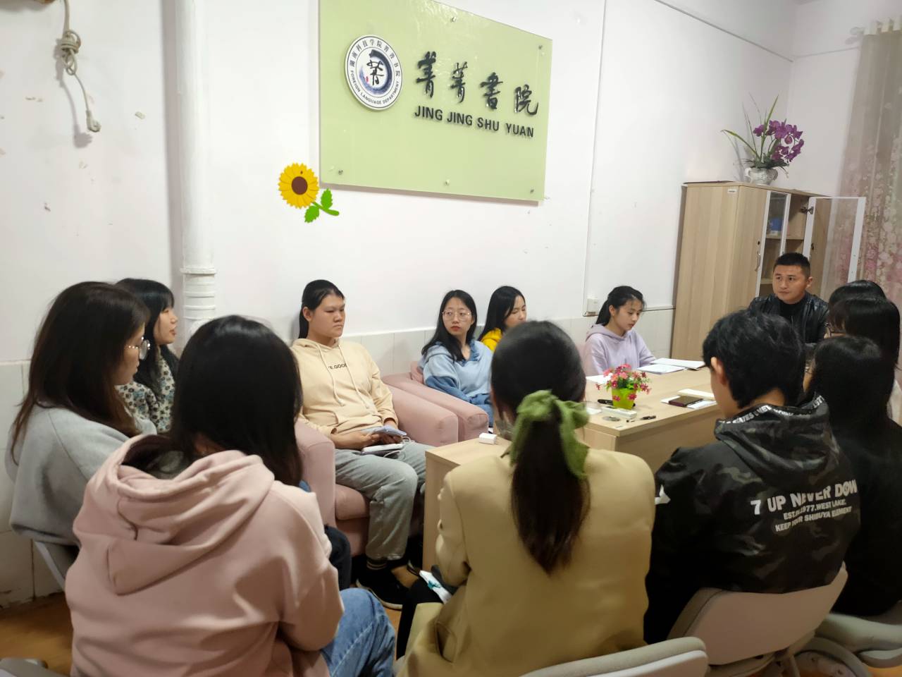 本网讯(通讯员 谭俊杰、何颖慧;摄影 吴梦瑶)为了促进我院心理健康教育工作,加强朋辈辅导员之间的交流,解答朋辈辅导员们在平时工作中遇到的困惑,2021年4月20日晚9点10分,外国语学院心理健康部在菁菁书院召开了本学期第二次朋辈辅导员交流会。本次会议由心理专干刘罗主持。