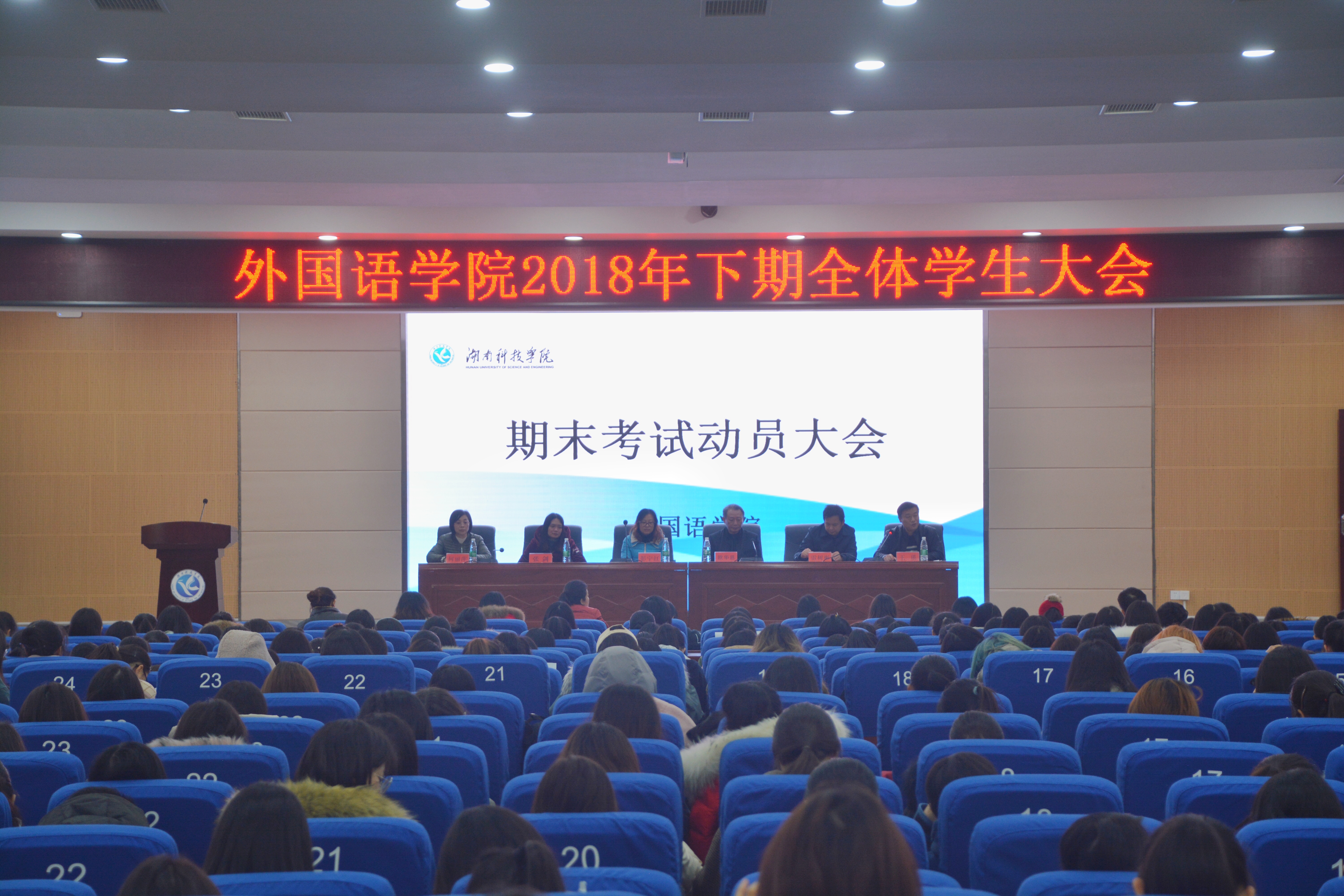 本网讯(通讯员 杜俊杰 秦楚婕)12月26日晚,外国语学院在潇湘大讲堂召开了全院学生大会。全体院领导、辅导员、班主任、全院学生参加会议,大会由党总支书记雷树彬主持。