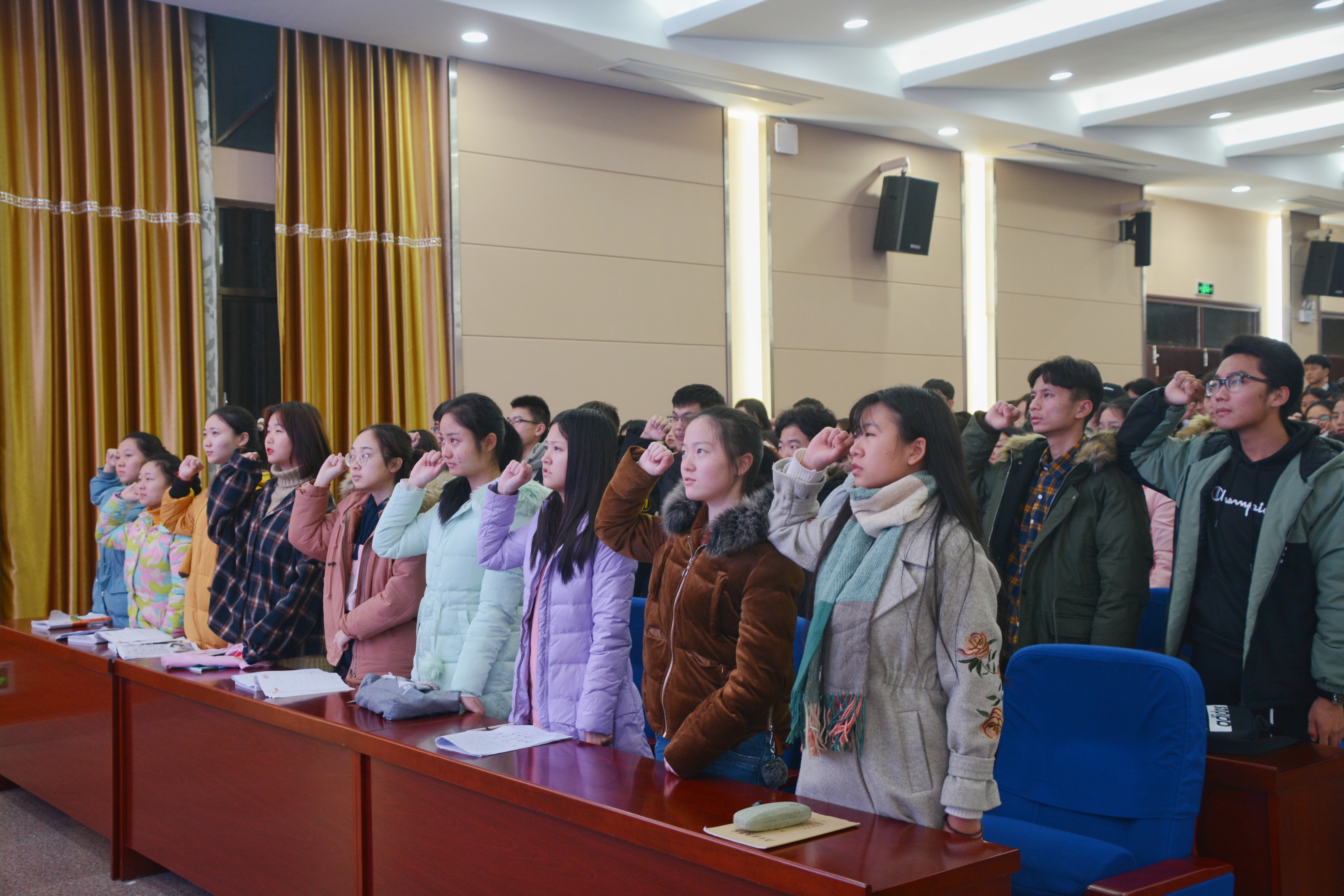 王瑛副书记作2018年学生工作报告和期末考试动员,回顾了成绩也指出了工作中存在的问题和努力的方向。会上,工作人员宣读了《万搏平台学生考试违纪处理方式》和《万搏平台学士学位授予细则》,全体同学起立进行诚信参考宣誓并签署承诺书。