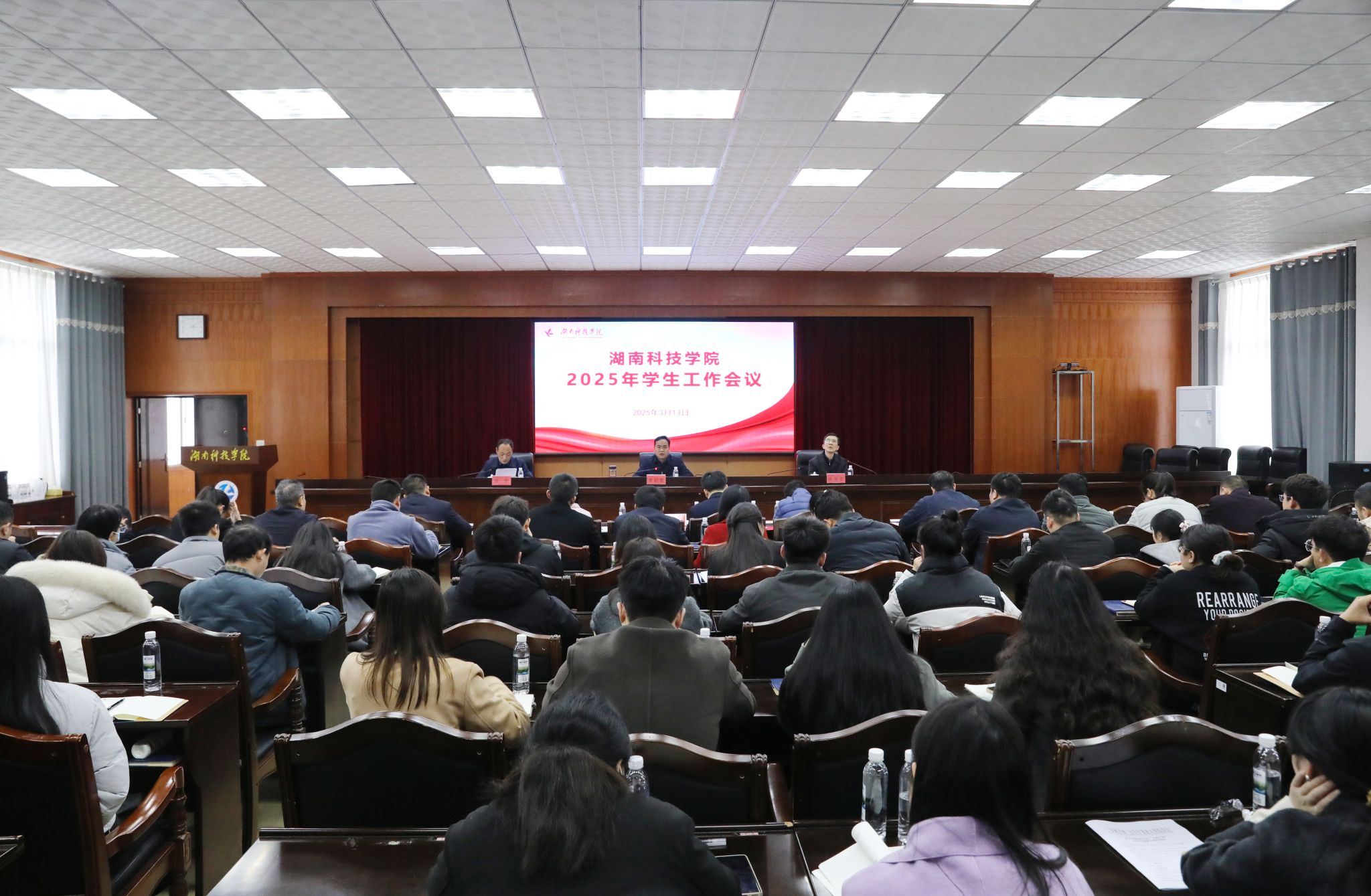本网讯(通讯员赵江南摄影谢志豪)3月13日,我校在行政楼召开2025年学生工作会议。党委副书记、校长黄创霞,党委委员、纪委书记陈灿军、党委委员、组织部部长杨涛出席会议。会议由杨涛主持。