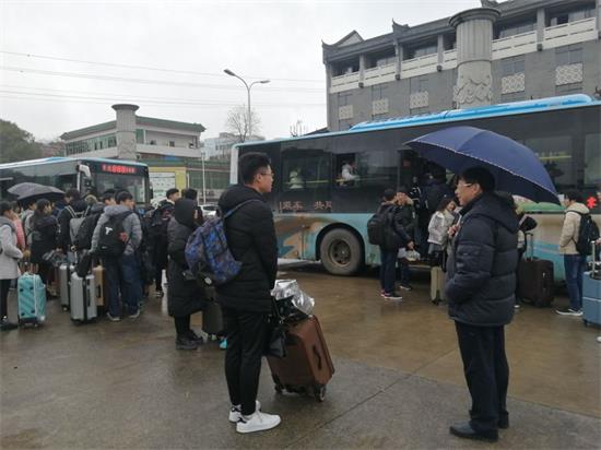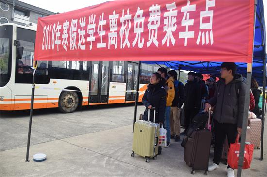 本网讯(胡敏辉邓强左璐瑶)寒假来临,春节将至,万搏平台党委高度重视学生安全离校工作。2018年1月20日至1月24日,特租用公交巴士免费送学生至冷水滩火车站、汽车站,情暖学子回家路。